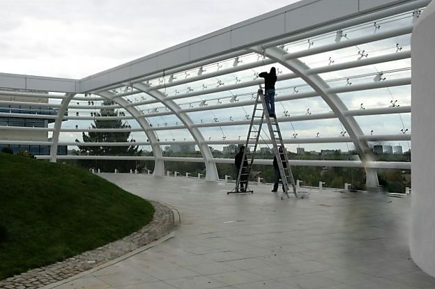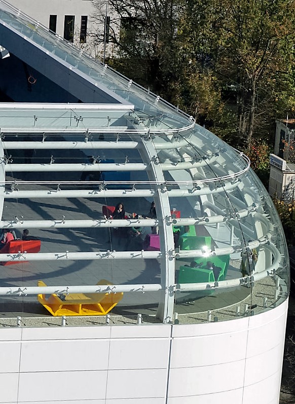 Tehnologia moderna de curbare pentru suprafete mari de sticla permite firmei noastre realizarea de elemente constructive pentru utilizari exterioare (pereti cortina cu zone mai mari sau mai mici de curbura, intrari si vitrine pentru magazine de lux, cupole, lifturi exterioare) sau interioare (balustrade pentru scari spiralate sau rotunjite, ascensoare transparente, compartimentari de birouri in forme circulare, etc.).
